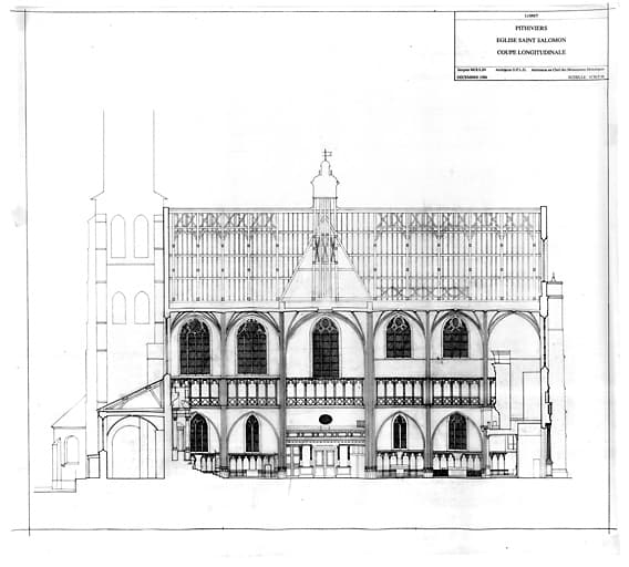 Eglise Saint-Salomon et Saint-Grégoire : Coupe longitudinale.