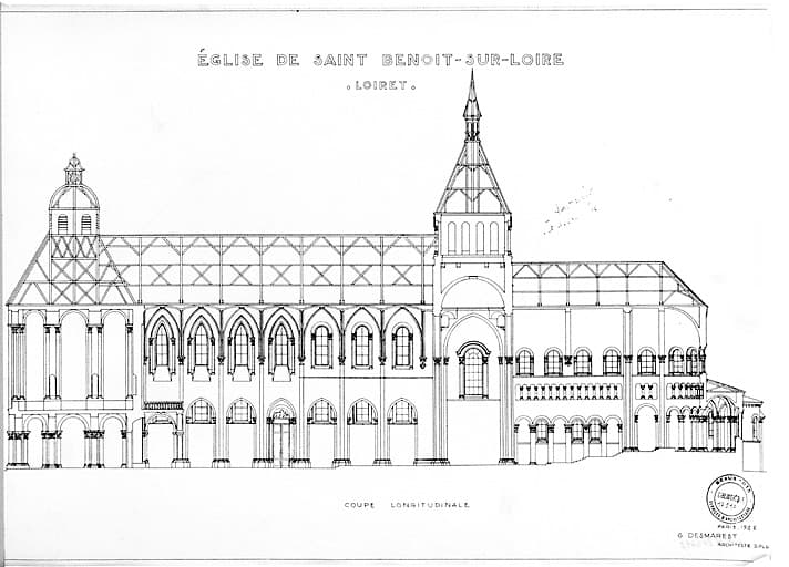 Eglise abbatiale ou abbaye de Fleury (ancienne) : Coupe longitudinale.