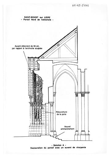 POP | Plateforme ouverte du patrimoineEglise abbatiale ou abbaye de Fleury (ancienne) : RESTAURATION DU PORTAIL NORD :Coupe sur le portail, projet A