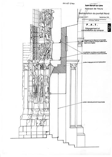 POP | Plateforme ouverte du patrimoineEglise abbatiale ou abbaye de Fleury (ancienne) : RESTAURATION DU PORTAIL NORD :(P.A.T.) coupe du portail avec dégagement et consolidation du tympan.