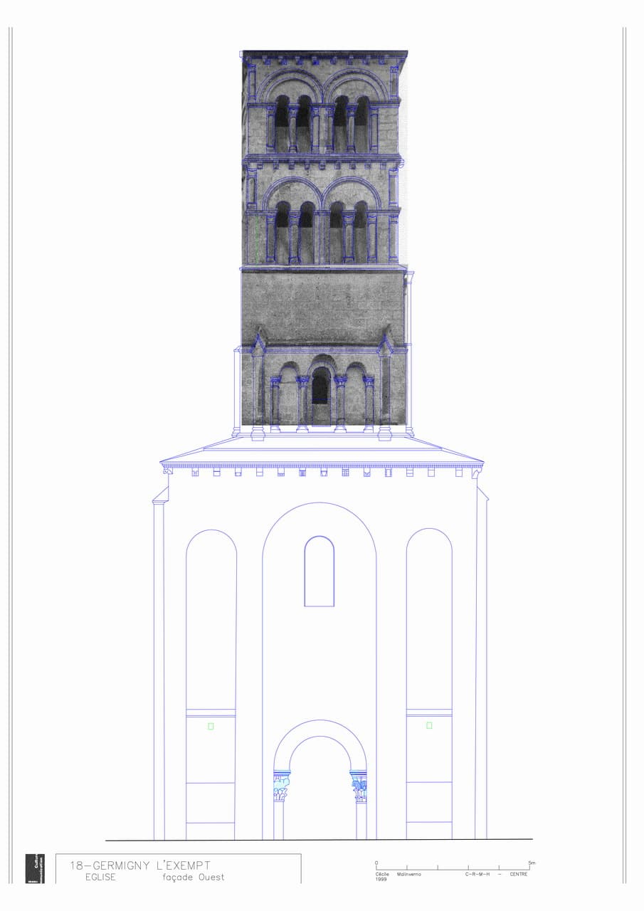 Eglise Notre-Dame : Façade ouest avec photo redressée.