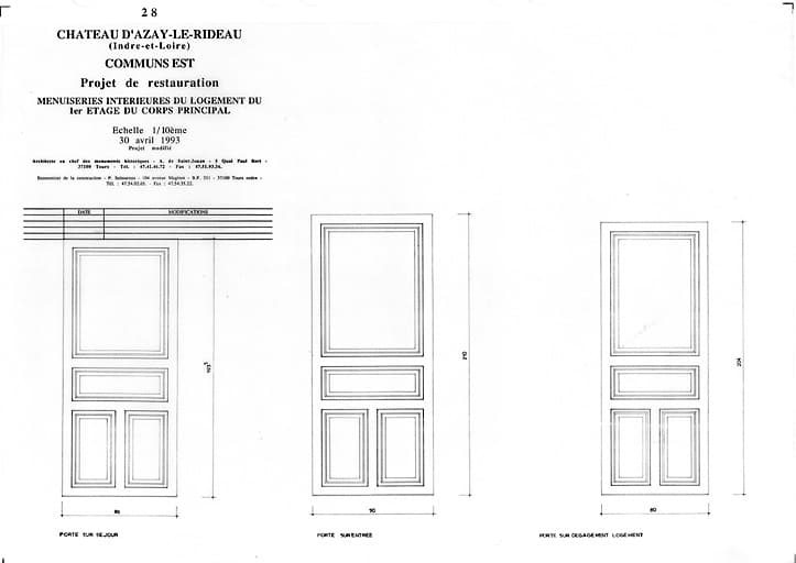POP | Plateforme ouverte du patrimoineChâteau, domaine d'Azay le Rideau : 25- RESTAURATION DES COMMUNS EST (P.A.T.) : détail des menuiseries du logement du 1er étage du corps principal (élévations).
