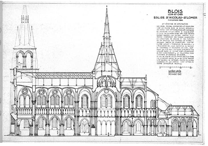 Eglise Saint-Nicolas-Saint-Lomer : coupe longitudinale