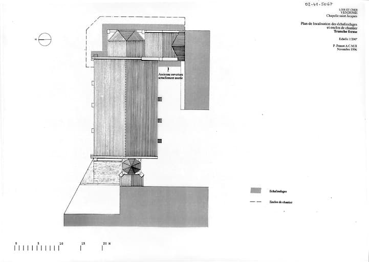 Chapelle Saint-Jacques, actuellement lycée Ronsard : plan de localisation des échafaudages et enclos de chantier TRANCHE FERME