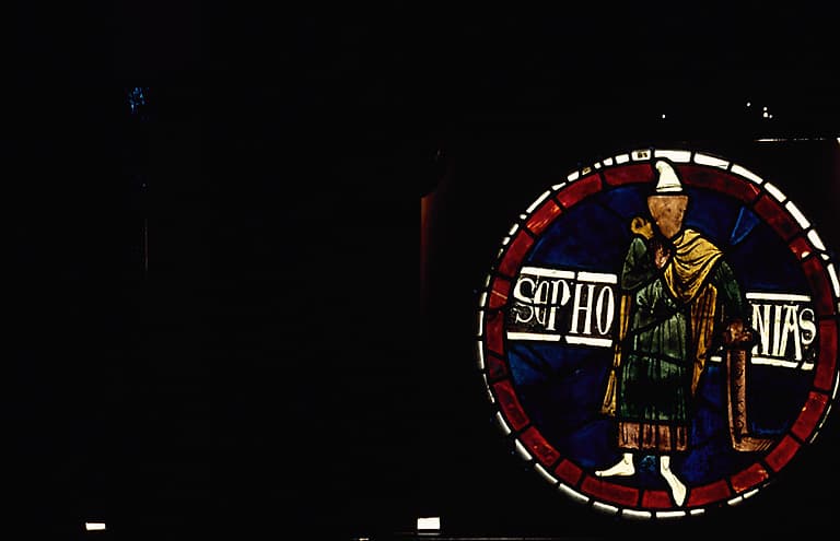 verrière : Panneau E8 (Ap. R.) médaillon, le prophète Sophonie.