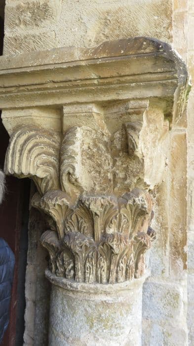 portail d’accès ouest au porche, détail d’un chapiteau sculpté