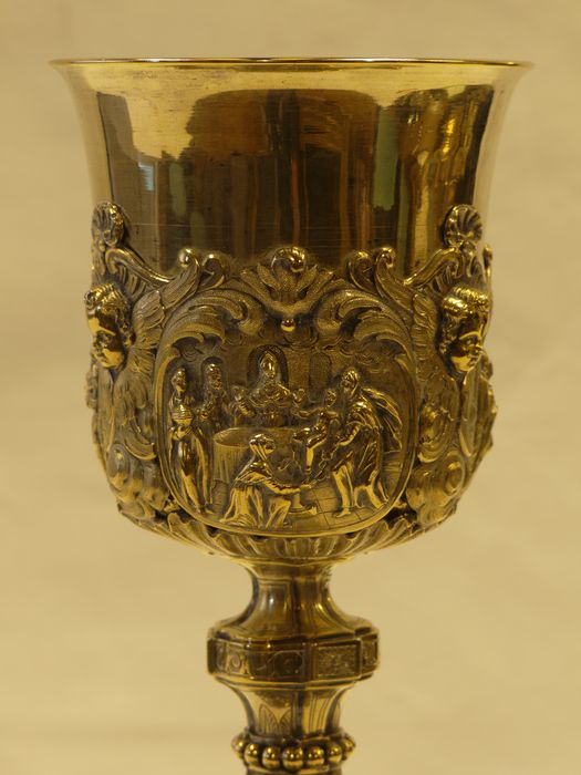 Calice : vue partielle de la coupe et du médaillon de l'Adoration des bergers