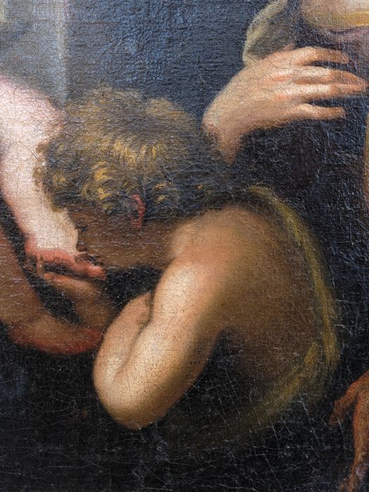 Tableau (Vierge à l'Enfant, saint Jean-Baptiste et sainte Anne) : vue de détail