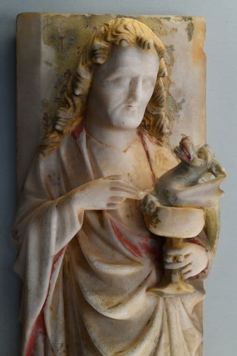 retable des vies de la Vierge et de saint Georges dit aussi retable du maître-autel, statuette : Saint Jean l’évangéliste, détail