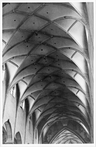 Vue d'ensemble du voûtement du vaisseau central depuis l'ouverture.