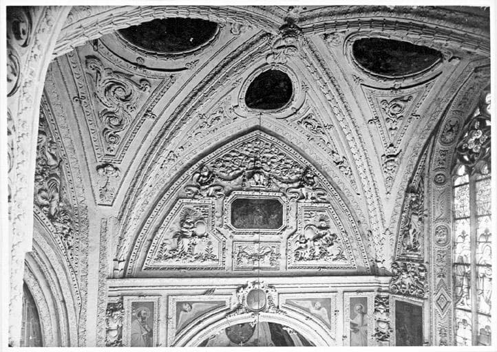 Mur est du croisillon sud, vue d'ensemble de la partie supérieure et de la voûte.