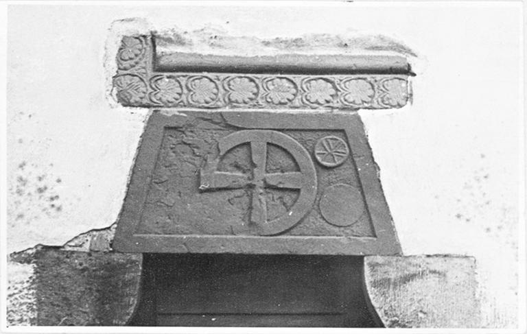 Porte latérale, détail du fronton sculpté.