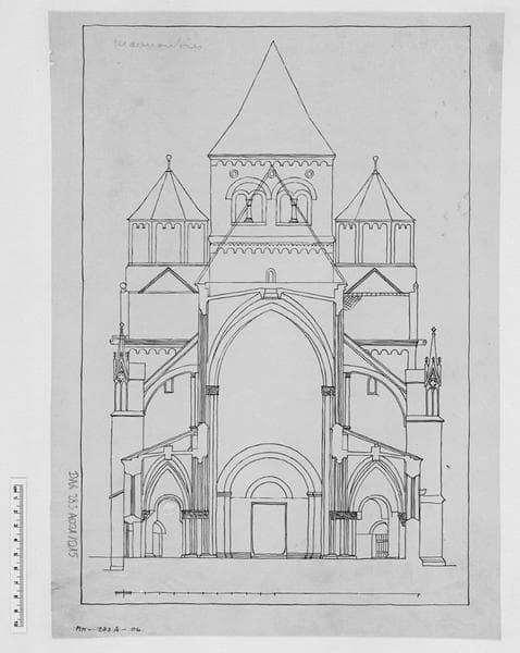 Coupe transversale sud-nord sur la nef.