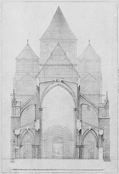 Coupe transversale sud-nord sur la nef.