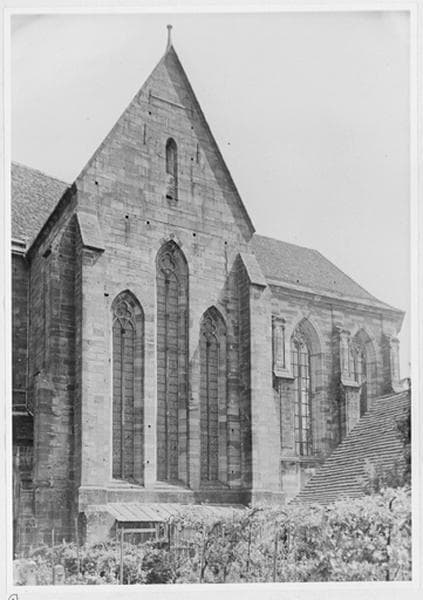 Façade sud du bras sud et du chevet, vue d'ensemble.