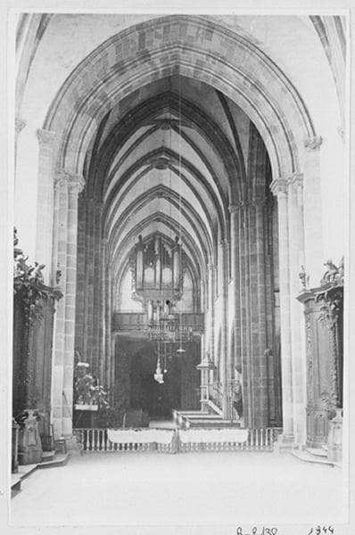 Vue d'ensemble intérieure vers la tribune d'orgue depuis le choeur.