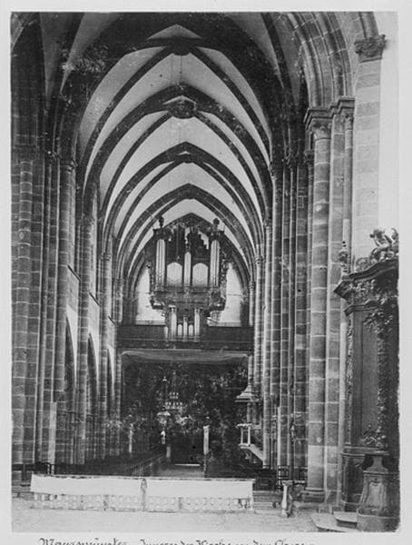 Vue d'ensemble intérieure vers la tribune d'orgue depuis le choeur.