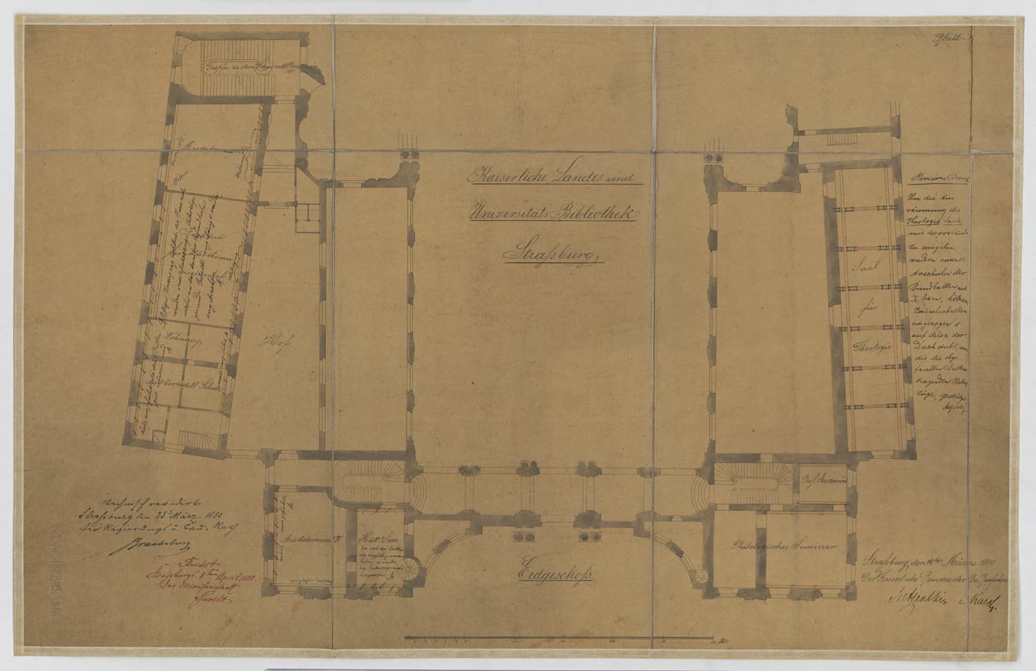 Projet d’aménagement en bibliothèque universitaire, plan du rez-de-chaussée des ailes est et ouest.