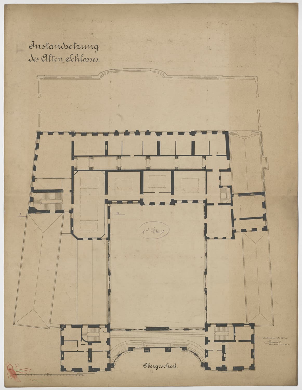 Projet de réaménagement, plan de masse du premier étage.