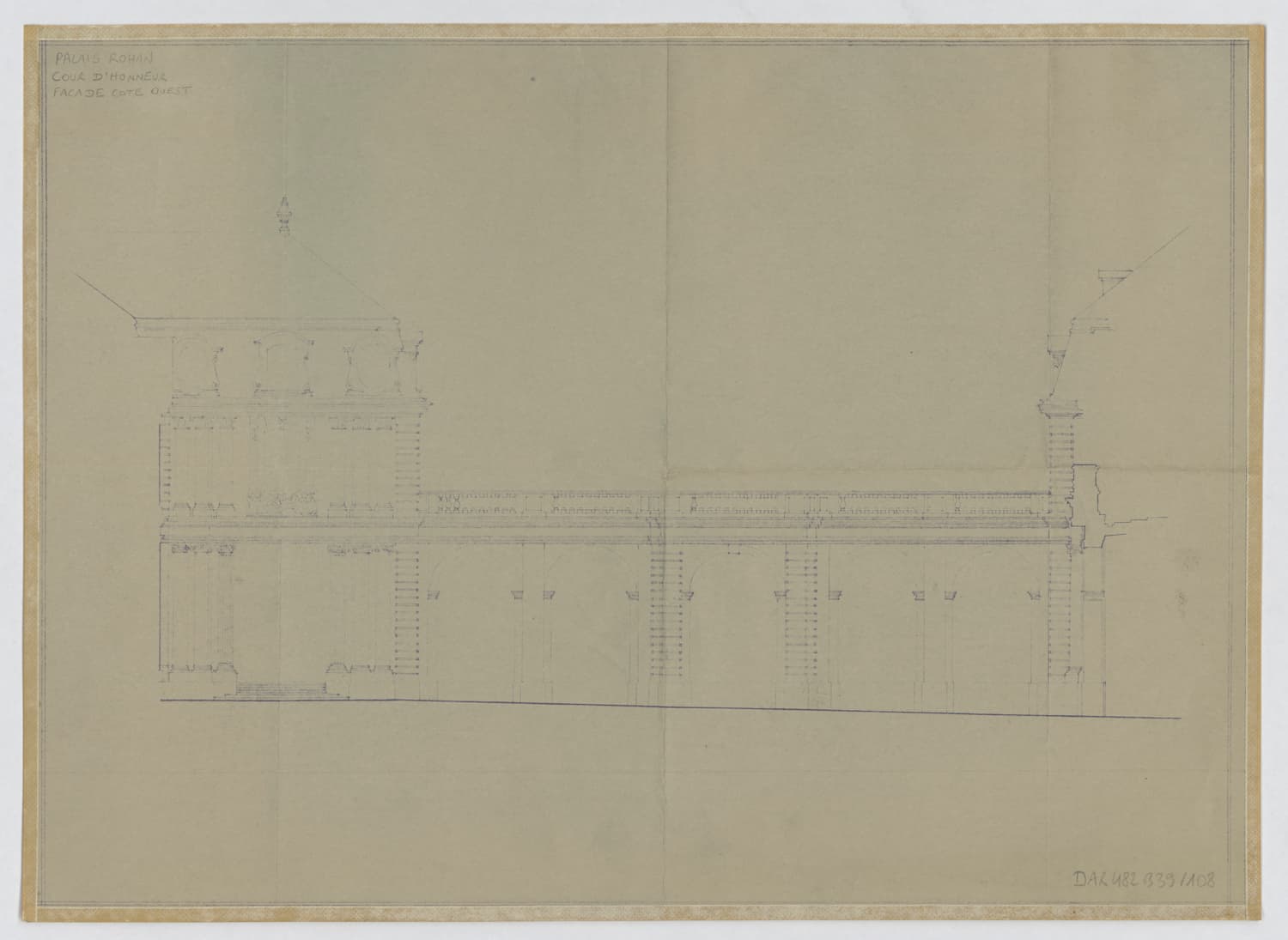 Cour d’honneur, élévation de la façade ouest.