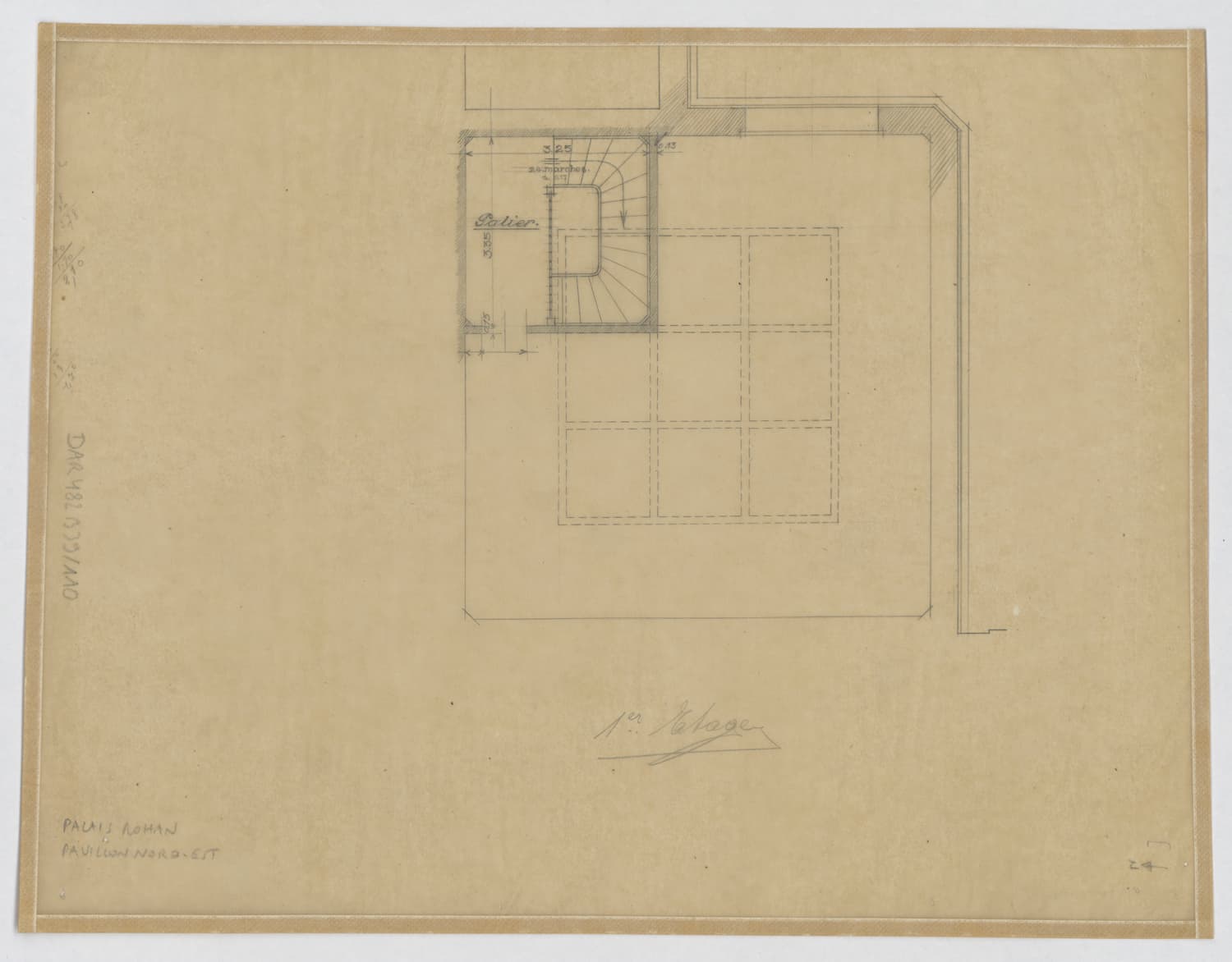 Projet de modification du pavillon nord-est, plan du palier de l’escalier au premier étage.