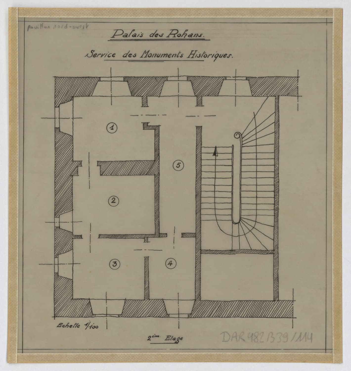 Pavillon nord-est, plan du palier de l’escalier au deuxième étage.