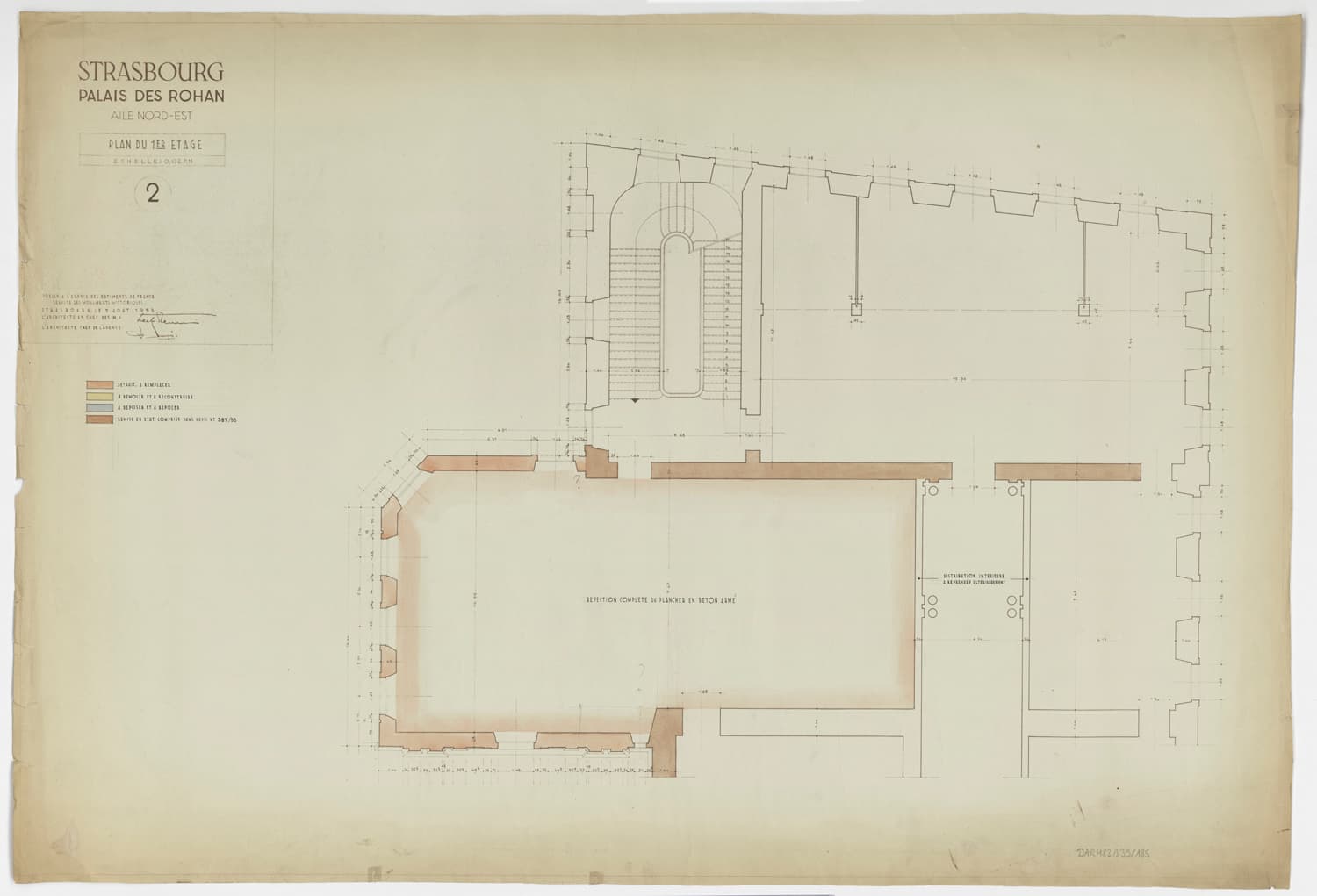 Travaux de restauration de l’aile nord-est, plan de masse du premier étage.