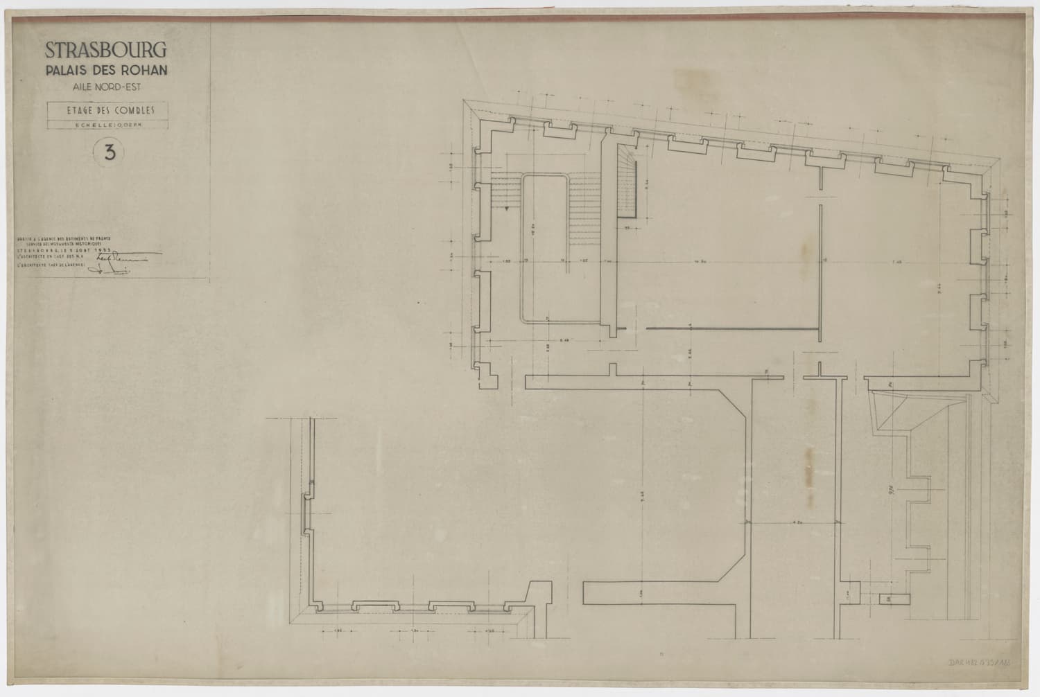 Aile nord-est, plan de masse des combles.