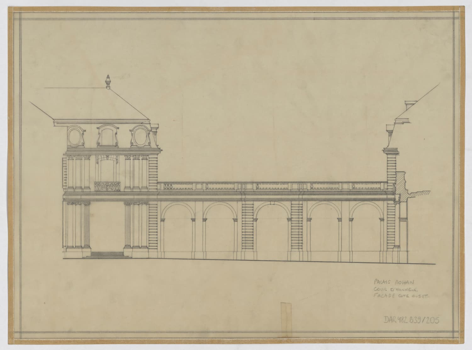 Cour d’honneur, élévation de la façade ouest.