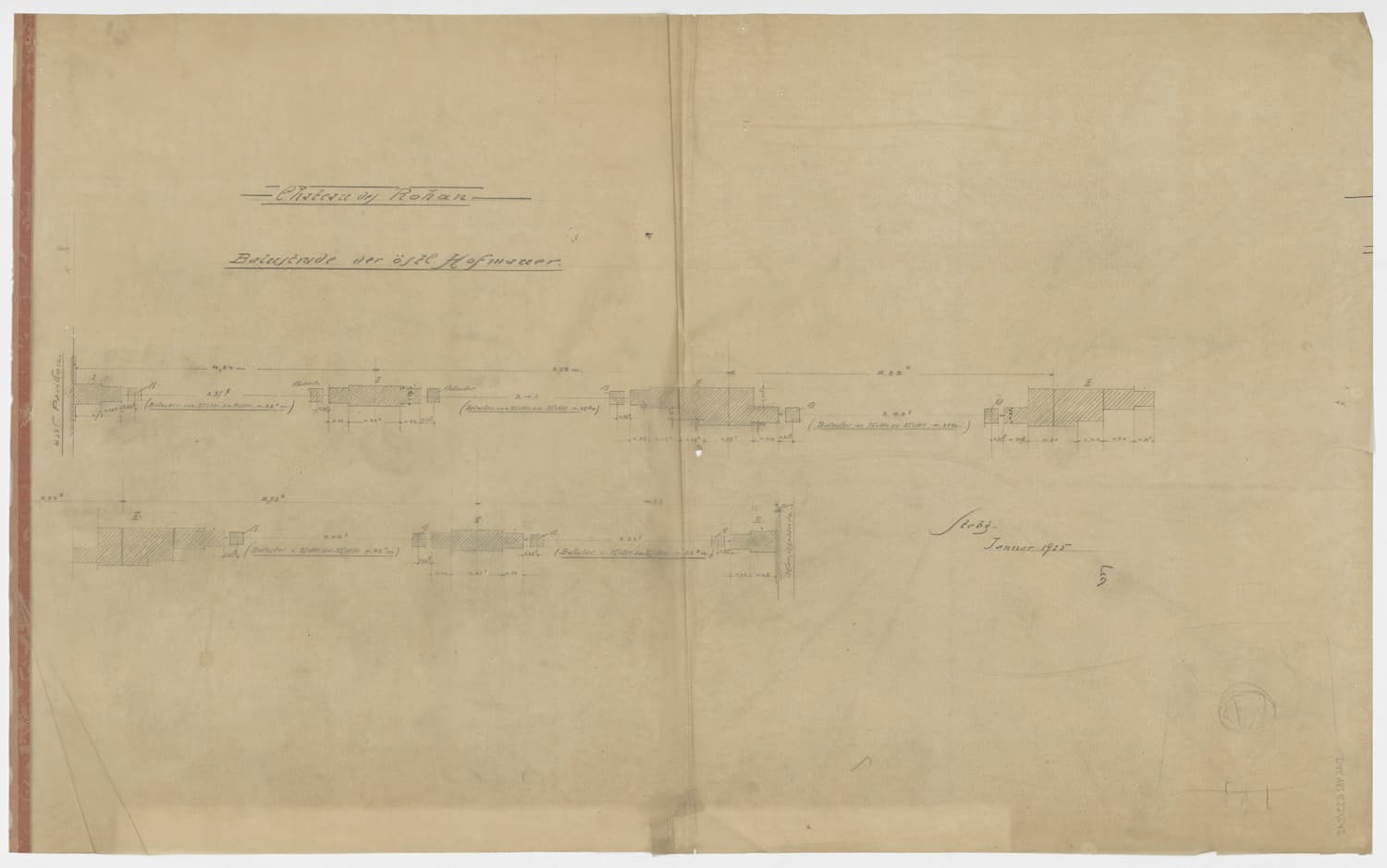 Façade est sur cour, sections stéréotomique du garde-corps.