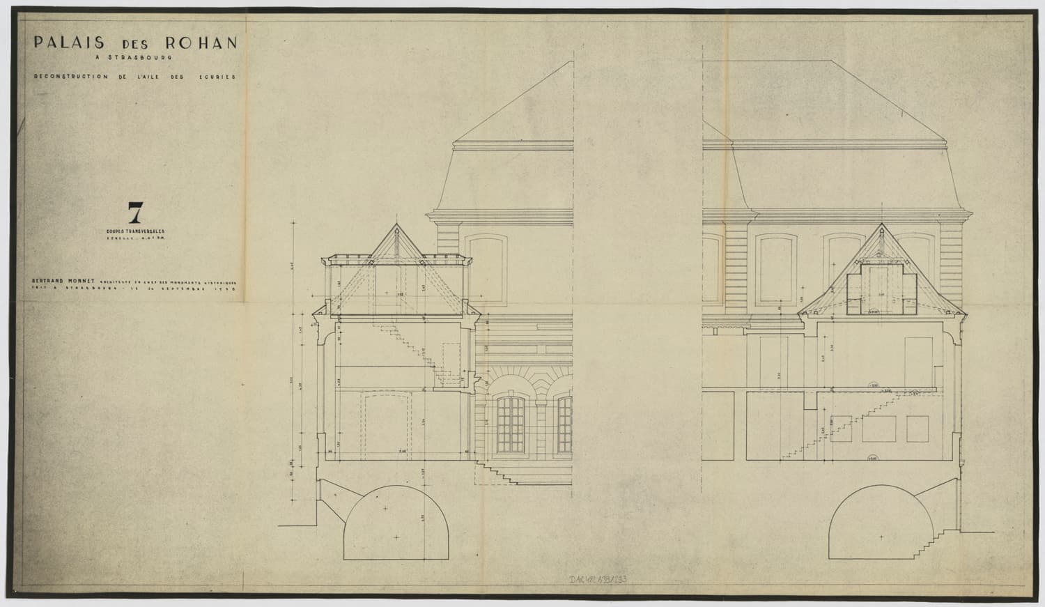 Reconstruction de l’aile des écuries, coupes transversales.