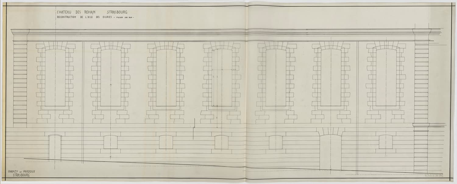 Reconstruction de l’aile des écuries, élévation de la façade sur rue.