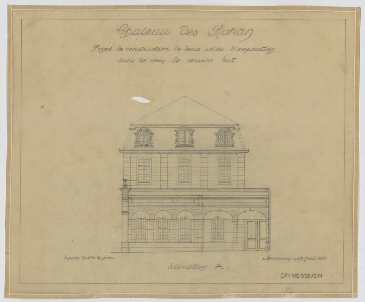 Projet de construction de deux salles d’exposition dans la cour est, élévation de la façade sud.