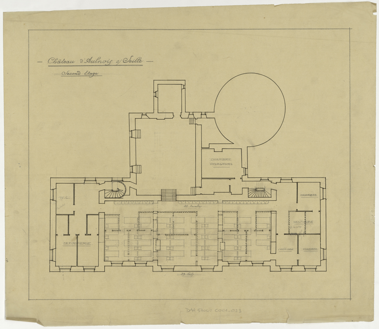 Projet d’aménagement en école, plan de masse du deuxième étage.