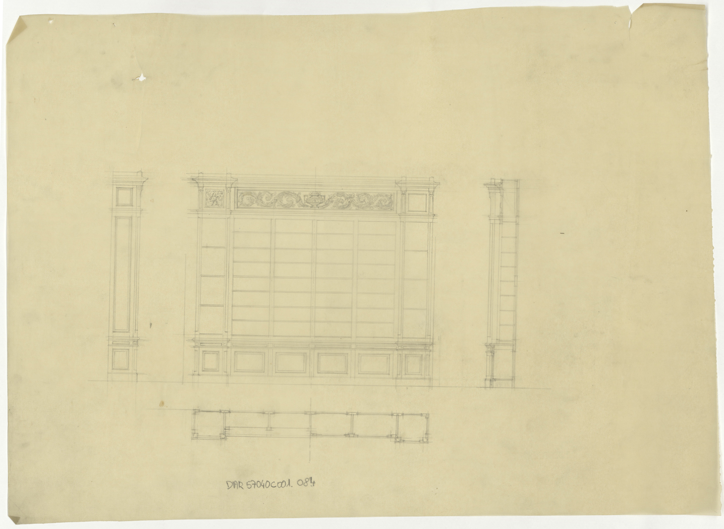 Bibliothèque, élévations et plan.