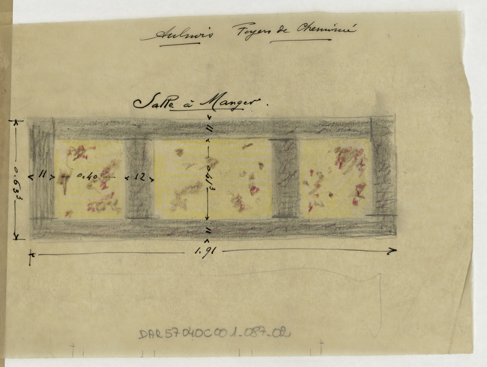 Grand salon, plan de foyer de cheminée.