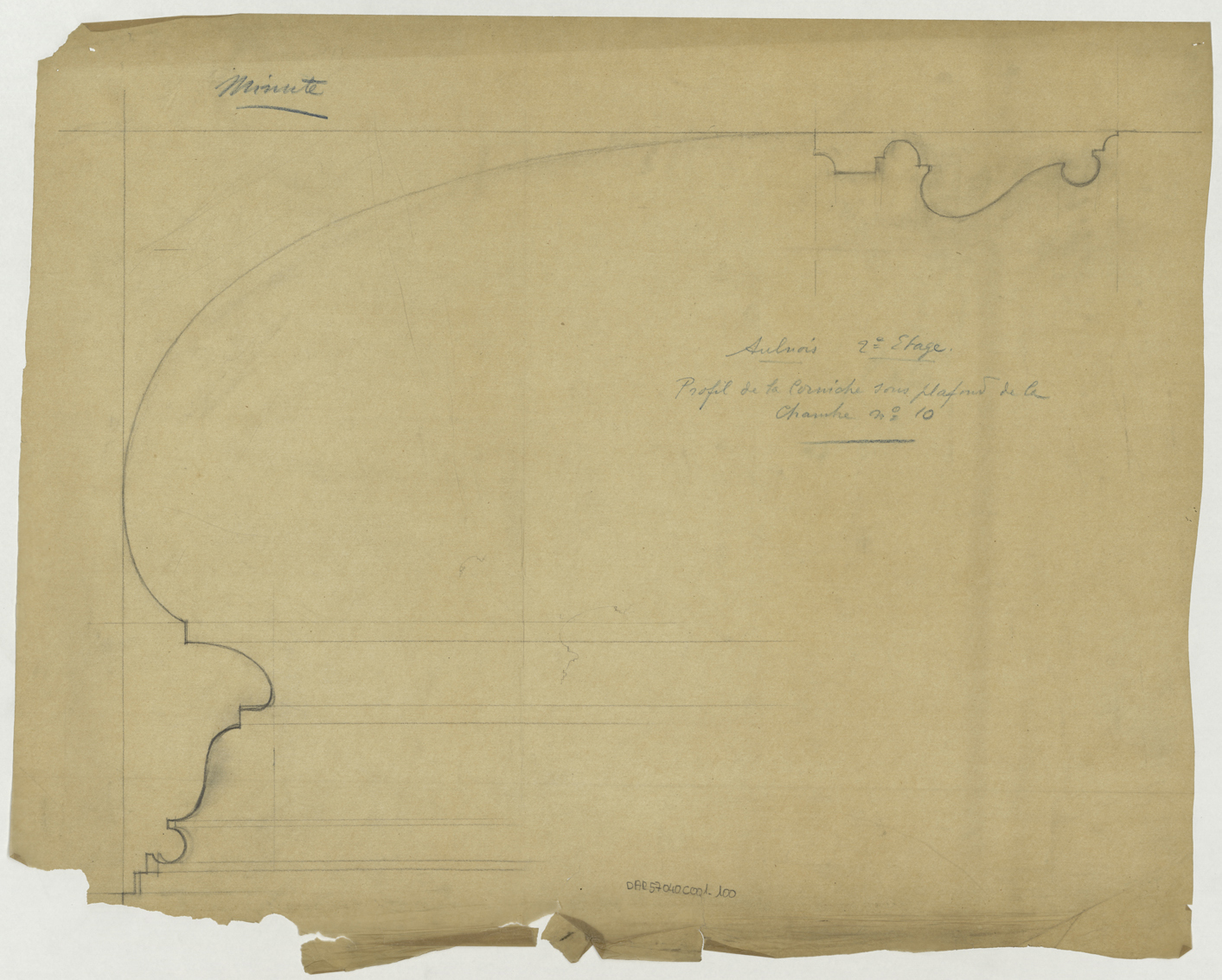 Chambre, profil de la corniche sous-plafond de la chambre numéro dix.