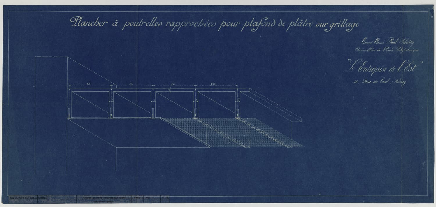 Projet de plafond, coupe sur le plancher à poutrelles rapprochées pour plafond de plâtre su grillage.