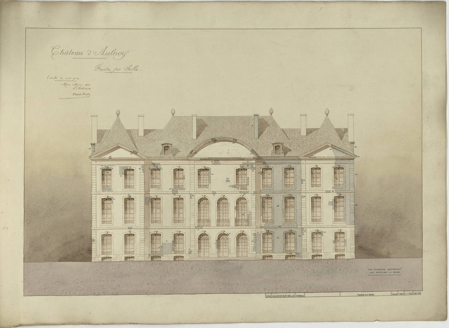 Travaux de restauration, élévation de la façade ouest sur jardin.