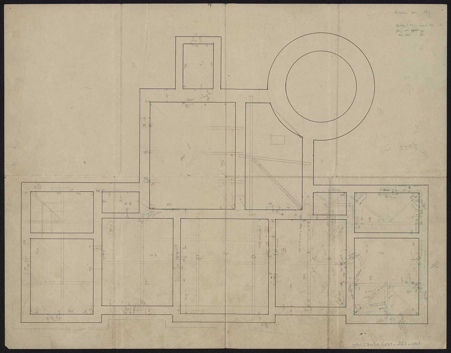 Charpente, plan partiel du deuxième étage.