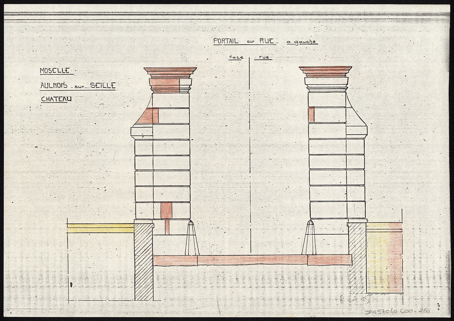 Travaux de restauration, élévation du portail d’entrée de gauche côté rue.