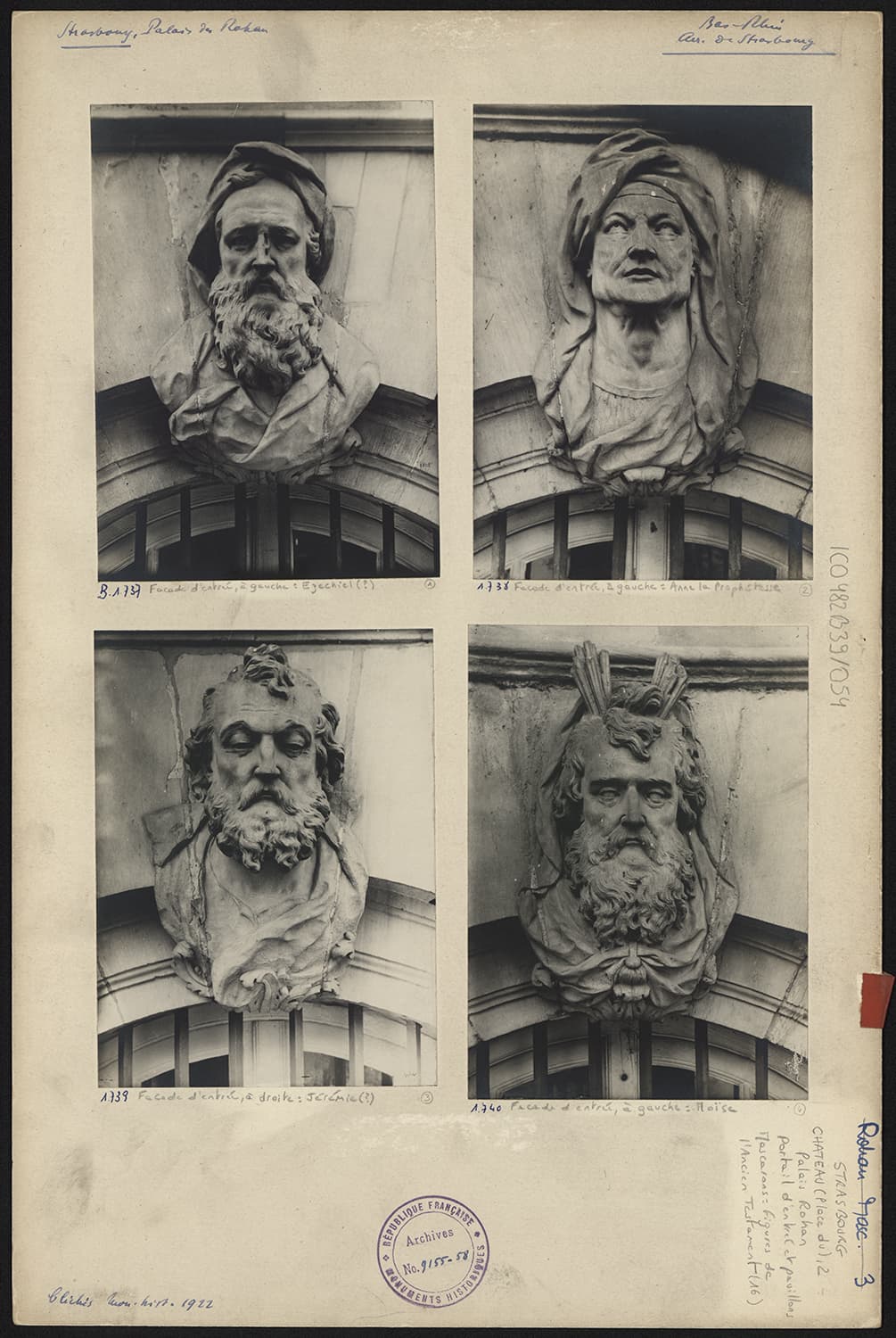 Vues de détail des mascarons aux figures de l’Ancien Testament sur la façade nord.