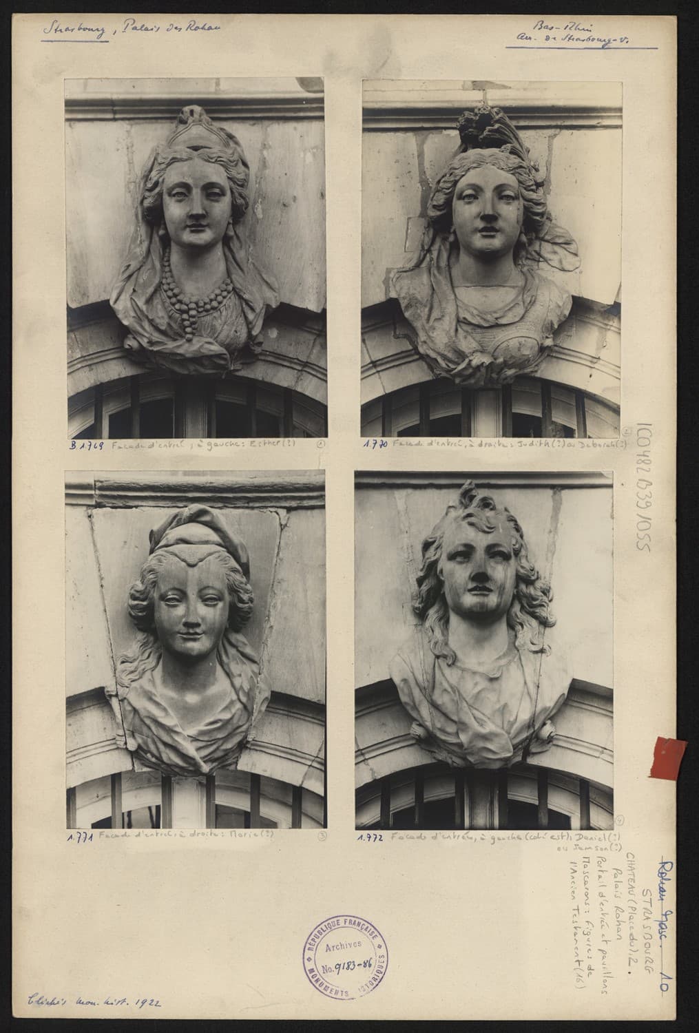 Vues de détail des mascarons aux figures de l’Ancien Testament sur la façade nord.