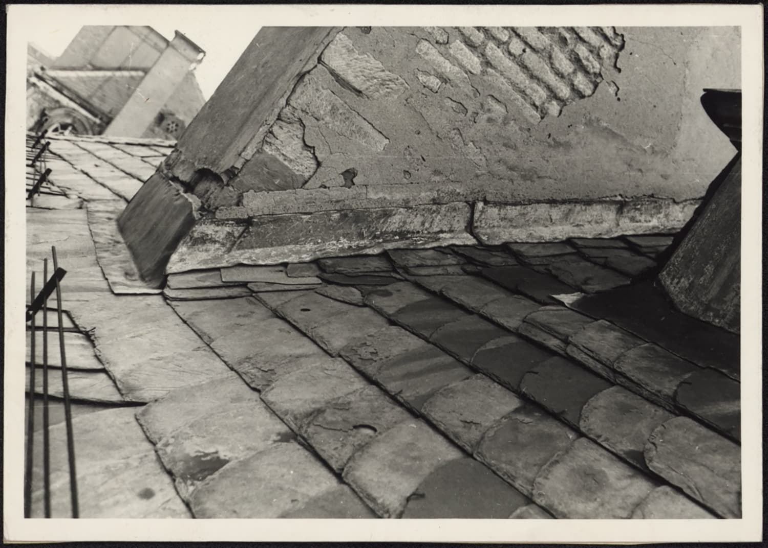 Vue de détail de la cheminée de la couverture du côté nord du pavillon nord-ouest.