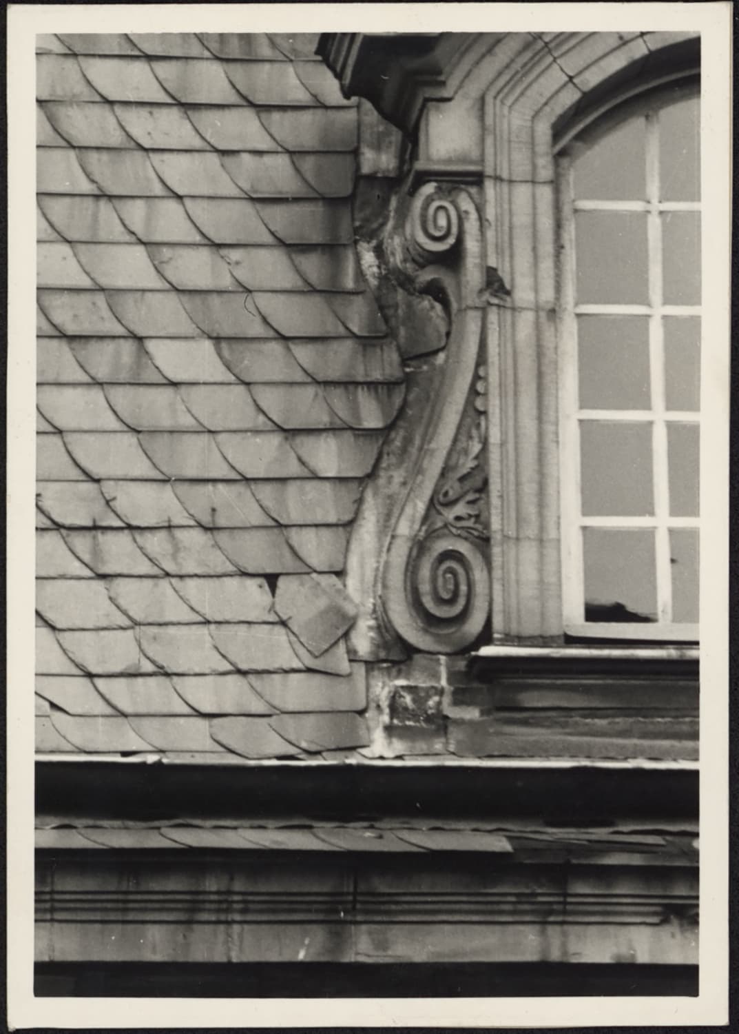 Vue de détail d’une lucarne du côté est du pavillon nord-ouest.