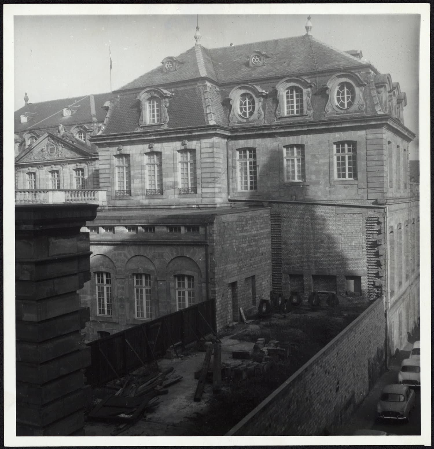 Vue d’ensemble des dommages de guerre sur l’aile ouest des anciennes écuries.