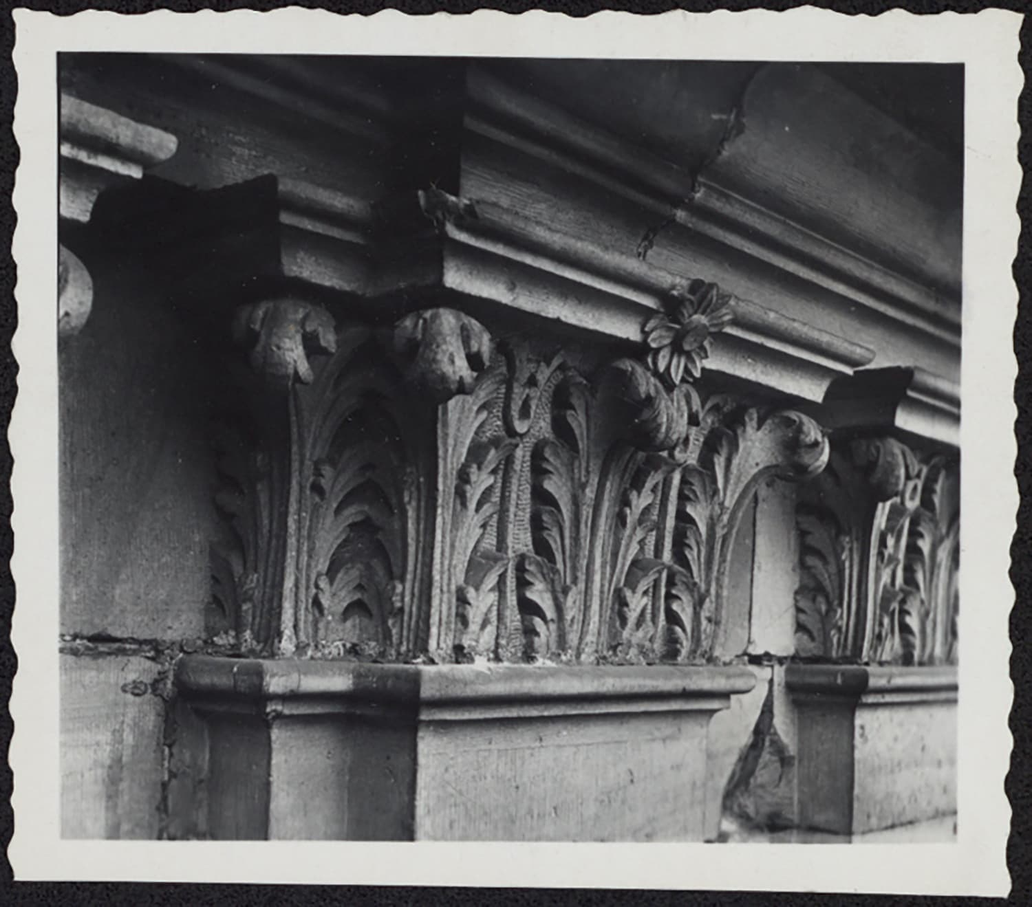 Vue de détail d’un chapiteau corinthien d'un pilastre du pavillon sud-ouest.