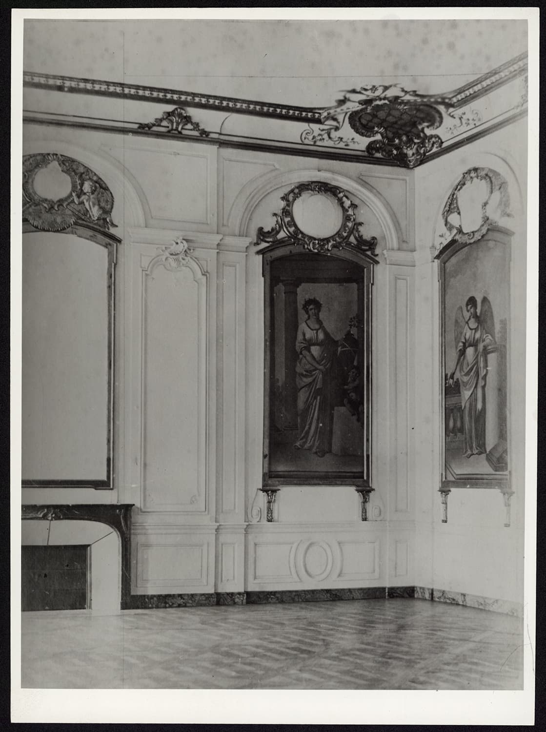 Vue de détail de l’angle nord-ouest du salon des évêques dans l’état antérieur à 1939.