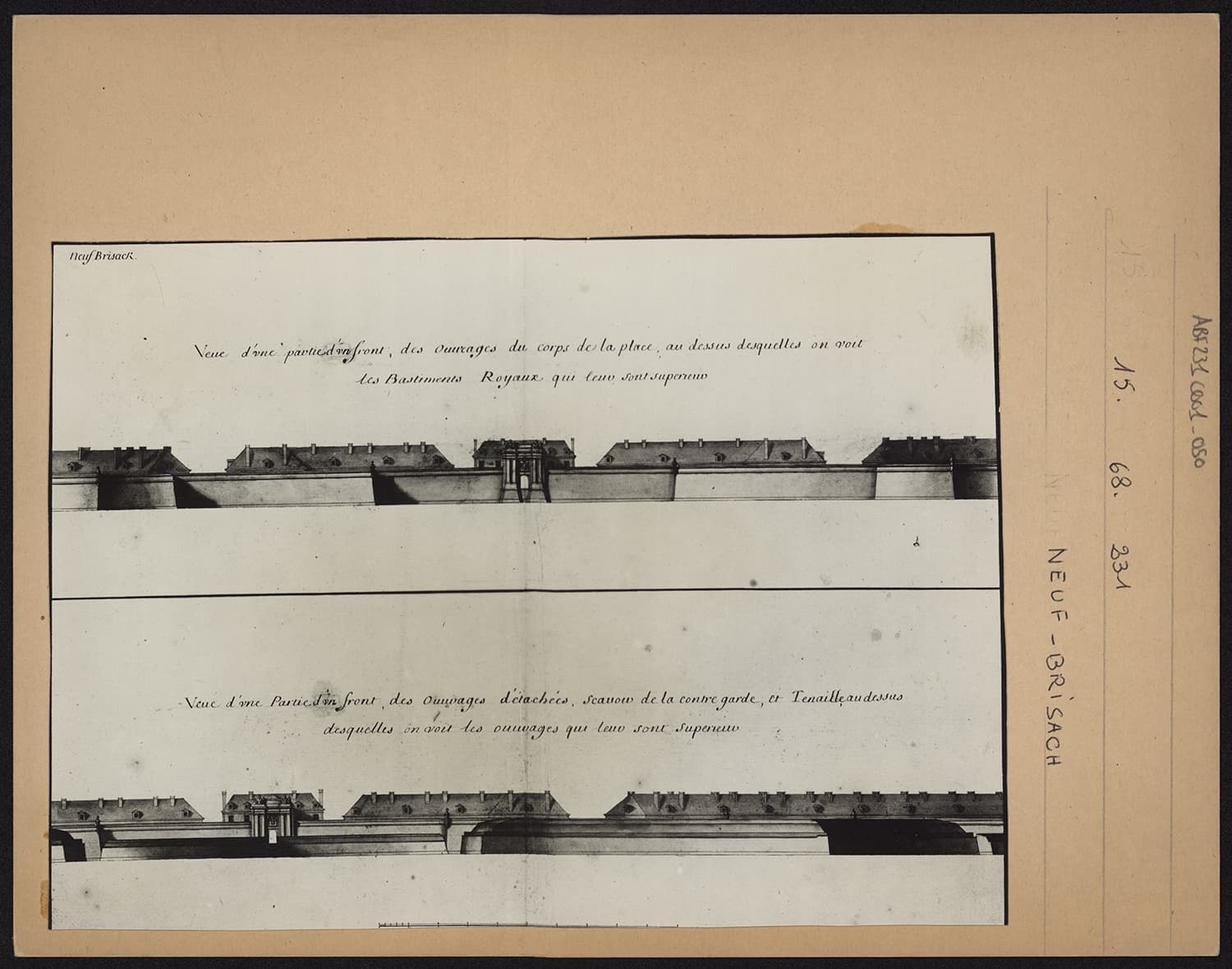 Elévations d’une section des remparts et des édifices défensifs hors ville.