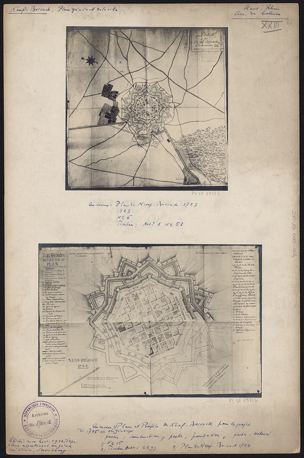 Plans de masse de la ville et de ses abords en 1723 et en 1744.